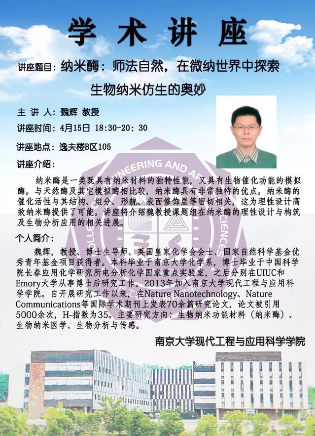 讲座题目:纳米酶:师法自然,在微纳世界中探索生物纳米仿生的奥妙