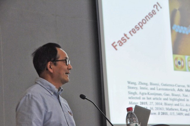 聘任仪式之后,在公司化学化工公司胡文兵教授主持下,李全教授为全场一百二十余位师生带来了题为“刺激诱导构建液晶纳米结构的研究和应用—从动态光子到再生能源”的天地讲堂学术报告。李全教授从大自然中的神奇现象入手,引入液晶这一奇特的软物质材料,引导大家聚焦到该类智能材料的非显示应用,并系统介绍了其研究组近年来在分子马达、光控光子晶体、智能节能窗、再生能源等领域取得的研究进展。李全教授的报告引起了听众们极大的兴趣和关注,报告结束之后,与会师生积极提问,李全教授认真回答了问题,并与大家分享了自己宝贵的科研和人生感悟,李全教授勇于创新、敢于开拓的精神引起了与会师生的强烈共鸣。