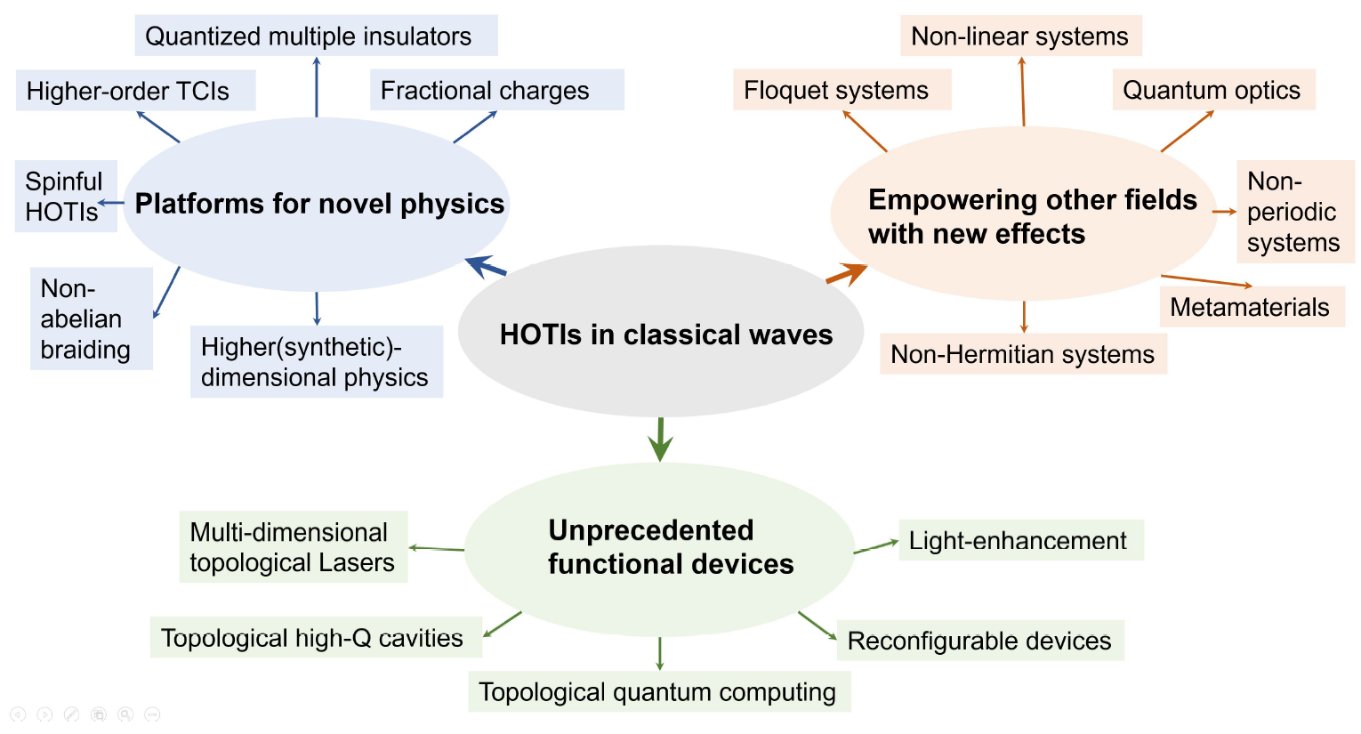 图-5. 经典波中的高阶拓扑带来的新物理研究平台,与其他领域结合带来的新效应和具有前所未有的新功能器件。