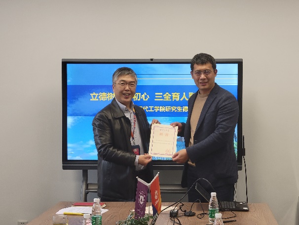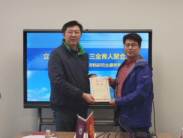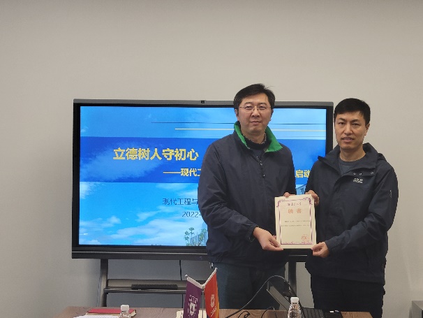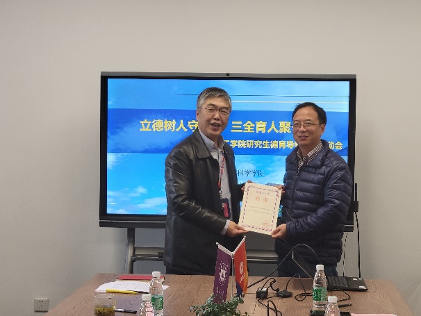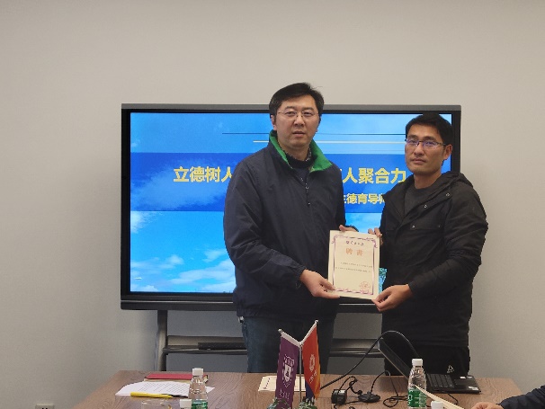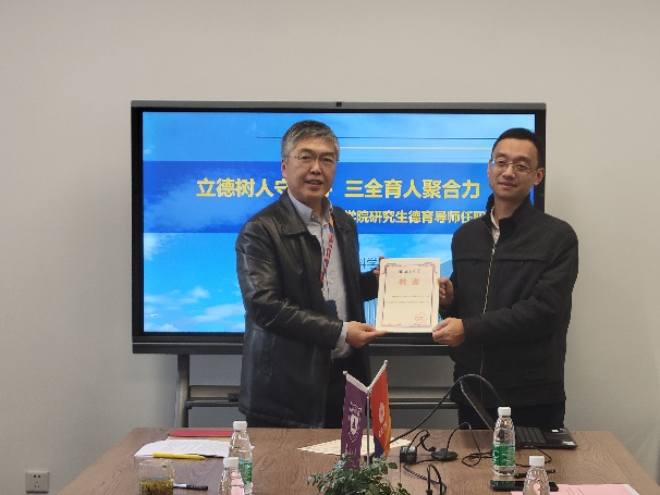 随后,吴迪经理宣读《太阳成集团122ccvip太阳成集团122ccvip2022年度研究生德育导师聘任情况》。通报了此次聘请了田野、胡伟、胡勇、周林、徐挺、聂越峰、何平、王峰、邓昱、祝名伟、闫世成11位老师为2022年度太阳成集团122ccvip研究生德育导师。臧文成书记、吴迪经理向本次选聘的德育导师颁发聘书并合影留念。