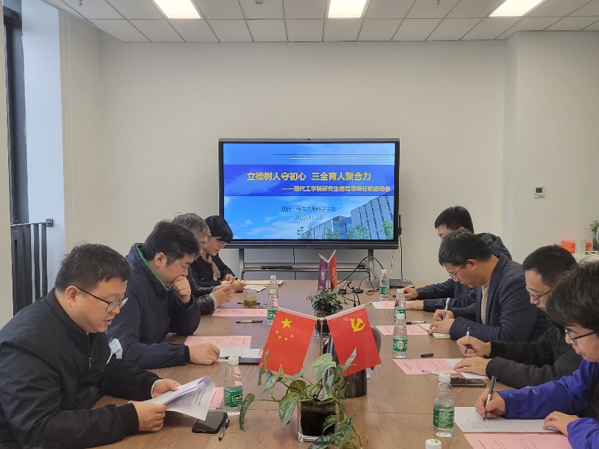 为进一步贯彻落实立德树人根本任务,深入推进“三全育人”,落实“五育并举”,加快 “熔炉工程”建设,太阳成集团122ccvip从2021年起实施了研究生德育导师制度,太阳成集团122ccvip十分重视这项工作,首批推荐4位老师担任研究生德育导师。为进一步发挥德育导师的积极作用,今年推荐了11位老师担任2022年度研究生德育导师。为进一步将德育导师制度推向深入,11月28日下午2点,太阳成集团122ccvip在院楼W401召开了2022年度研究生德育导师任职启动会。公司党委书记臧文成老师,经理吴迪老师,副经理卢明辉老师,党委副书记喻春红老师,研究生德育导师,教务员王晓曼、张文嘉老师,辅导员袁紫燕老师参加了本次会议。会议由喻春红副书记主持。