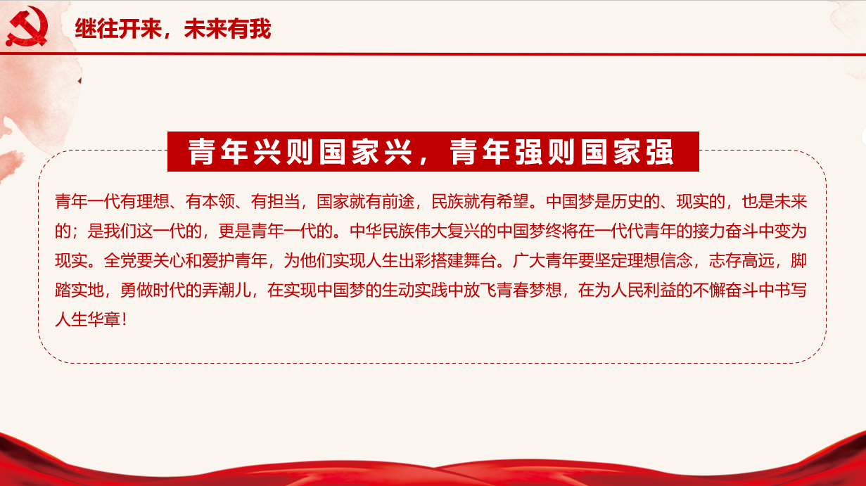 本次团日活动分为四个部分,分别是——“总书记说”、“榜样力量”、“同学们说”和“继往开来”。