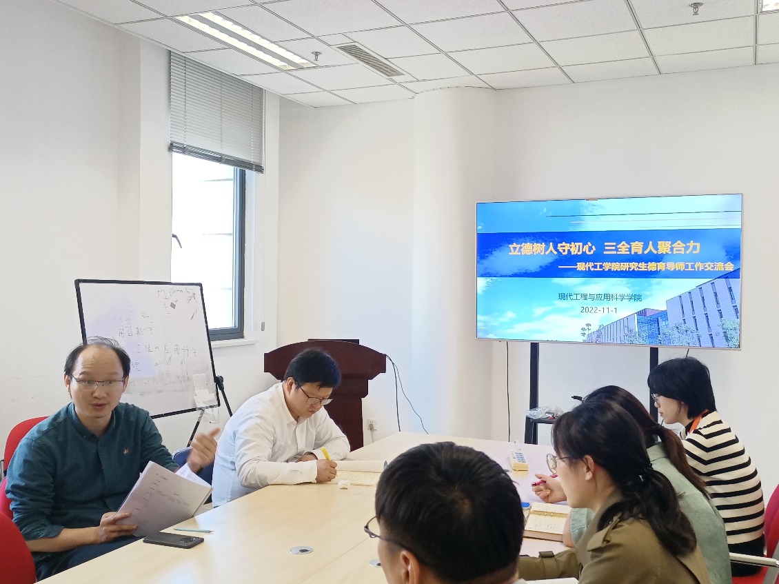 研究生导师是“公司产品的第一责任人”, 是承担研究生教育“为党育人、为国育才”使命的中坚力量。研究生德育导师在党的建设、思政教育等方面发挥示范引领作用,站在了将立德树人根本任务落实落地落细在人才培养的第一线。最后,就研究生德育导师的工作内容和后续的长效化发展,与会领导和各位老师展开了热烈的探讨。