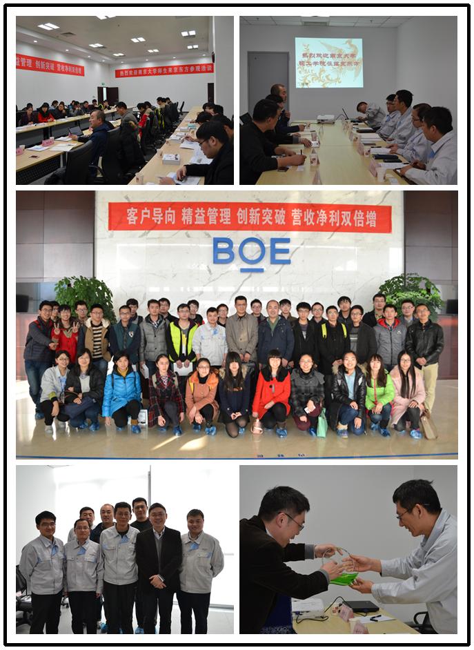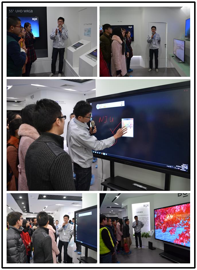 应公司邀请,12月23日,在执行经理陆延青、副书记周剑峰的带领下,公司师生赴合肥参观了京东方8代线。在京东方我们了解到企业自1993年由北京电子管厂发展而来至今成为液晶显示行业翘楚、世界顶尖高新技术企业的成长历程。现实展示的特色产品也让同学们更实在真切地感受到京东方的产业实力和不断的创新进步,其中110寸的高清宽屏液晶显示屏创造了吉尼斯记录也征服了同学们的感官,人机互动触摸屏让大家憧憬未来的教育发展,透明显示屏则激发了大家对于未来智能家电广泛应用的憧憬。京东方在显示行业的不断进步与发展,极大增强了同学的民族自豪感,也为大家立志投身科研工业事业提供了很大的动力。