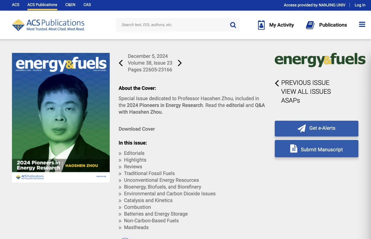 为表彰周豪慎教授的卓越成就,美国化学会在其能源旗舰期刊《Energy & Fuels》的最新一期中,特别推出了专刊,以彰显周豪慎教授在能源研究领域的重要成就。该特刊不仅包含了关于周豪慎教授科研成就的专题报道,还出版了对周教授的专访,通过问答的形式深入解读了他的科研思想和人才培养心得。