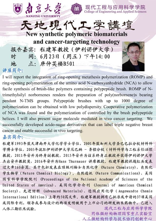 报告题目:New synthetic polymeric biomaterials and cancer-targeting technology