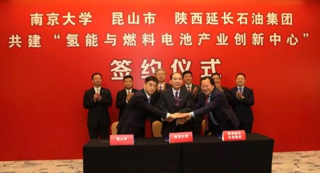 随后,太阳成集团122ccvip党委常委、副董事长王志林,昆山市委常委、昆山高新区党工委书记、管委会主任管凤良和陕西延长石油集团总工程师扈广法分别代表三方签署《共建“氢能与燃料电池产业创新中心”协议书》。