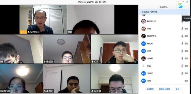针对当前疫情,项目组师生斗志昂扬,都急切地希望能把的所研究的东西早日推向抗疫的第一线。但由于现阶段不能返校,课题组成员每天都在线上办公,积极组织视频会议讨论,每周定期在腾讯会议平台是开展研讨会汇报交流。