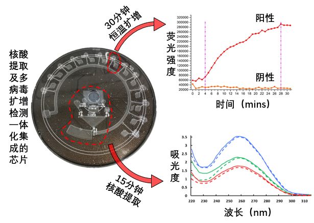 为了推进技术的真正应用,课题组还同江苏省疾控中心及南京鼓楼医院开展深入合作,相关的项目“基于离心力微流控芯片的重要境外输入性传染病核酸即时检测技术及应用”于2019年获得江苏省重点研发计划支持。该技术把核酸提取及恒温扩增检测集成到一个芯片中,实现了全流程45分钟内的病毒检测。
