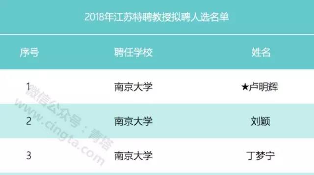 6月8日,江苏省教育厅公示了2018年江苏特聘教授拟聘人选名单,公司卢明辉教授入围。