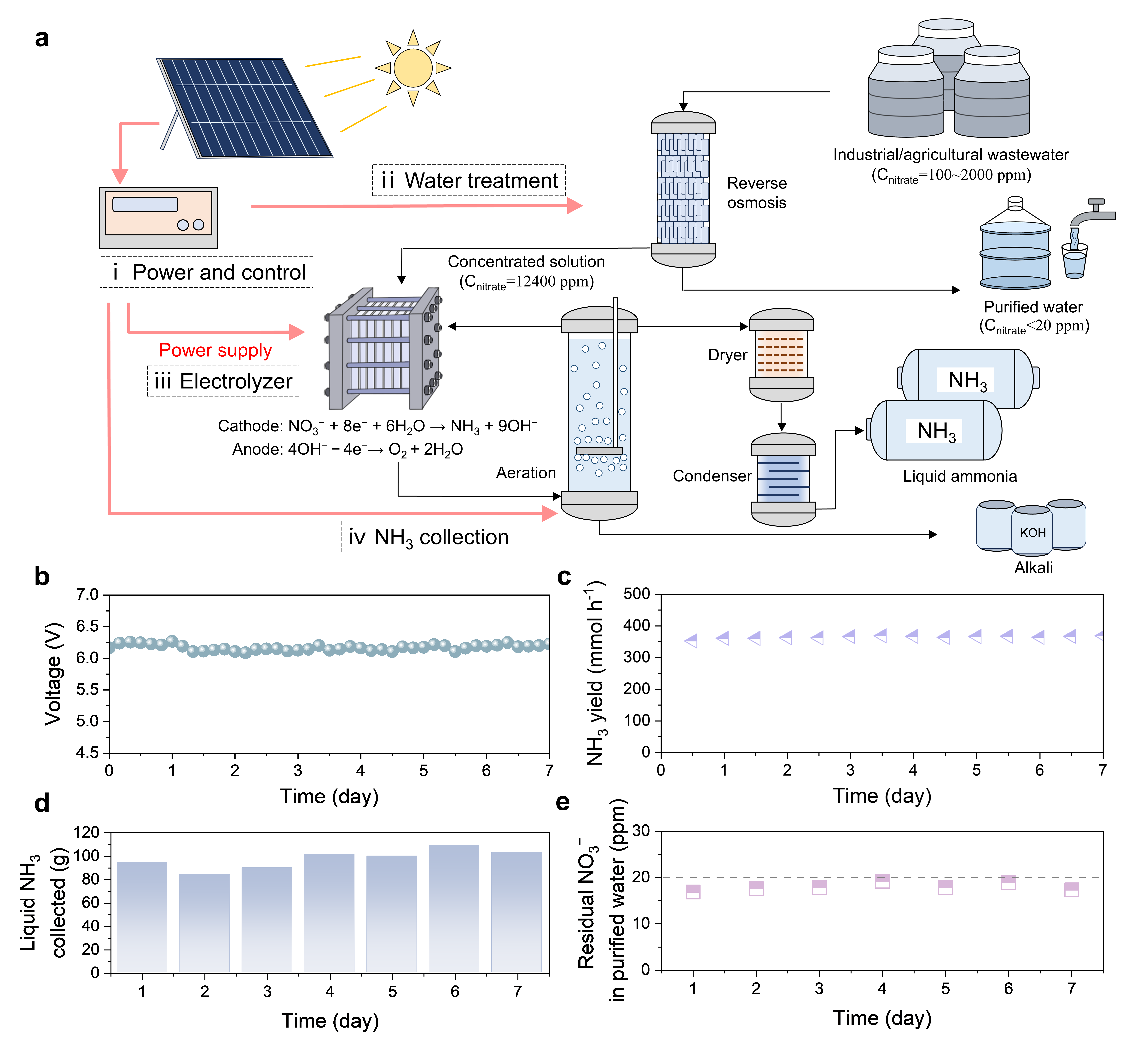 图3 太阳能驱动的废水硝酸盐处理和氨合成一体化示范系统