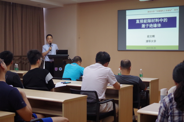 2019年6月26日下午4点,“天地现代工学讲坛”第十一期第七讲在唐仲英楼B501顺利举行,本次报告我们邀请到清华大学物理系段文晖院士来校交流并做题为“直接能隙材料中的激子绝缘体(Excitonic insulators in direct-gap materials)”。报告由公司材料科学与工程系袁洪涛教授主持,固体微结构物理国家重点实验室主任陈延峰教授出席并代表公司师生向段文晖院士赠送讲坛纪念品。