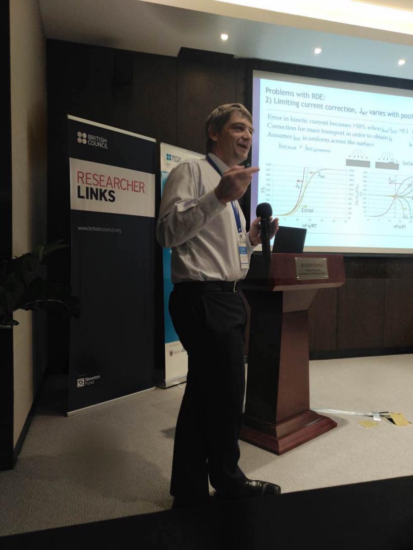 开幕式由公司刘建国教授主持,公司执行经理陆延青教授致欢迎词,陆经理详细介绍了本院现状与规划,并欢迎海内外学者加盟。重庆大学魏子栋教授,中科院大连化物所邵志刚研究员,纽卡斯尔大学Ulrich Stimming教授,帝国理工公司 Anthony Kucernak教授分别做了主旨报告。随后来自中英两国的数十位专家、学者、教授针对不同议题作了主题报告及墙报展示,与会代表在三天的会议期间详细交流和探讨了燃料电池催化剂领域的最新进展、前沿科学问题和未来难点。