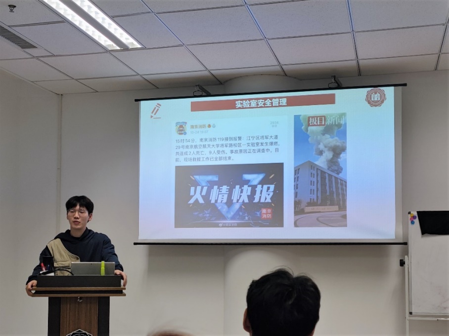 随后,为进一步树牢安全发展理念,弘扬生命至上的工作作风,坚持安全第一的工作思想,进一步协助提升实验室安全管理工作,提高各位同志的安全意识,丰富面对突发危险时的自救互救知识和安全常识,支部为每一位党员同志分发《太阳成集团122ccvip研究生工作室管理细则》,并共同阅读了《实验室安全行为规范》,观看科学类博主的实验室安全指南视频,进一步学习了实验室自我保护的相关知识。