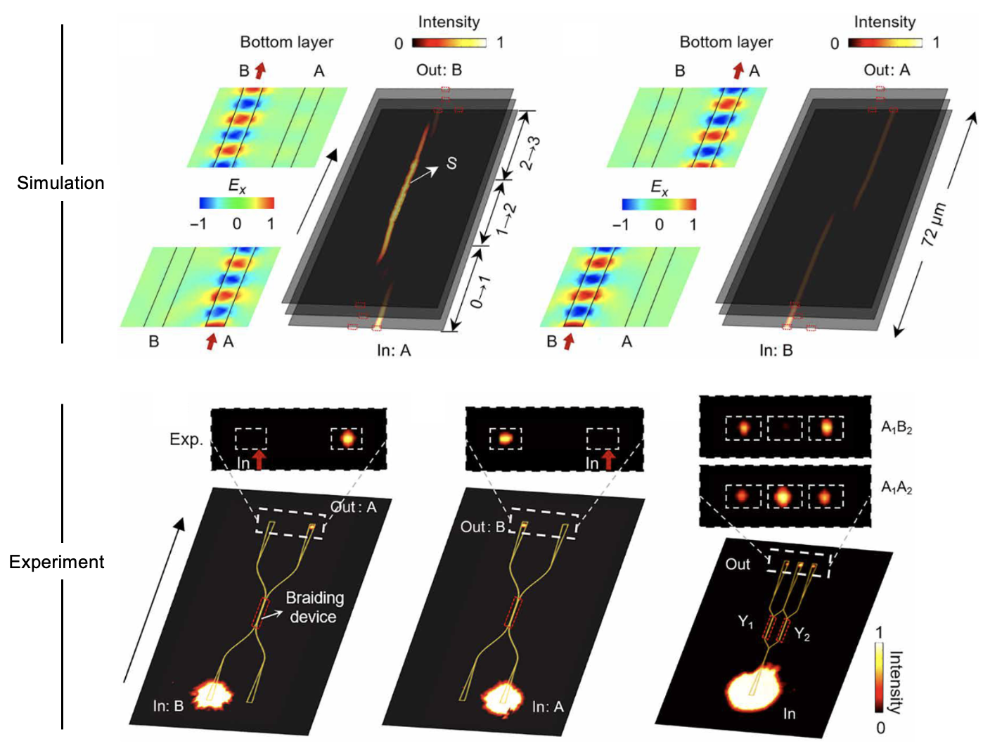 图4. 非阿贝尔编织模拟与实验结果 (B3)。