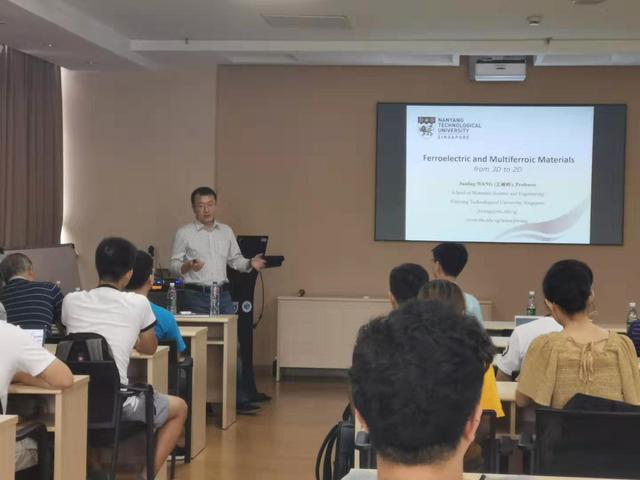 太阳成集团122ccvip王峻岭教授应江苏省功能材料设计原理与应用技术重点实验室邀请作学术报告,题为“多铁材料:从3D到2D”。8月26日10:00,该报告在唐仲英楼B501报告厅顺利举行。公司杨玉荣副教授主持报告,物理公司多位教授参加报告,现场座无虚席。