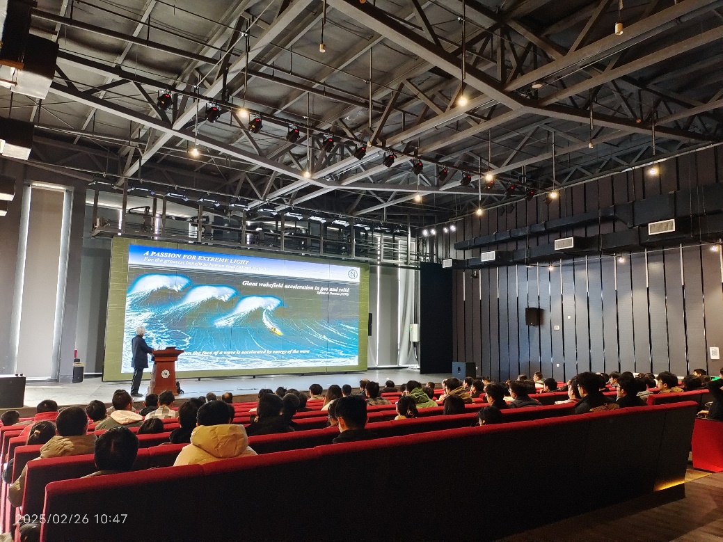 2月26日上午,Mourou教授在公司报告厅为师生作了一场题为“Extreme light and applications”的学术报告。他深入浅出地介绍了啁啾脉冲放大(CPA)技术的原理及其在超强超短脉冲激光领域的革命性贡献。CPA技术不仅推动了激光物理学的快速发展,还在医疗、材料加工、核物理等领域产生了深远影响。Mourou教授还分享了超快激光领域的最新研究进展,并展望了未来技术的发展方向。报告结束后,师生们踊跃提问,与Mourou教授展开了热烈讨论。