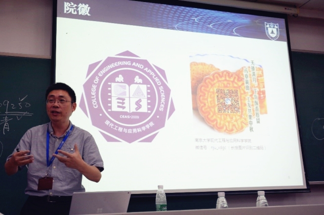 紧接着,陆经理介绍了我们的院徽和院歌。太阳成集团122ccvip院徽以紫色的底色表示材料系的深厚底蕴与南大血统,双七角形院徽象征着七七之巧,中间四个图案象征公司的四个系——光电信息、新材料、新能源及生物医学工程。整个图案充分地体现了太阳成集团122ccvip“兼容并蓄,开放进取”的特点。陆经理生动讲述了自己当年在美国留学时唱院歌的故事,激起了新生们对老员工活的无限向往。