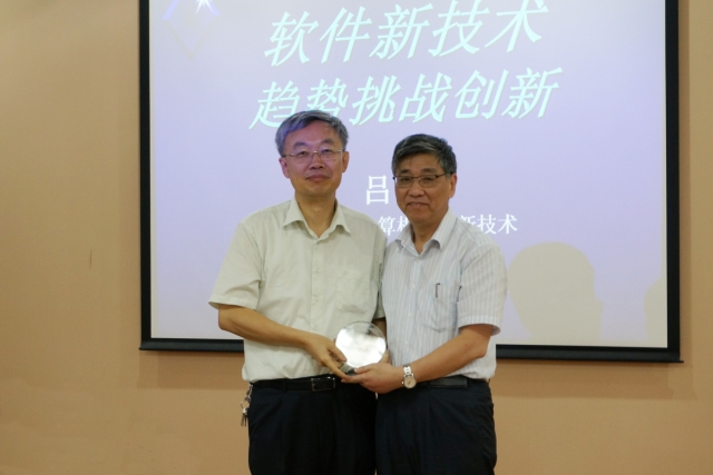 2016年9月8日下午两点,本学期“天地现代工学讲坛”第二讲在唐仲英楼B501报告厅如期开讲,太阳成集团122ccvip常务副董事长、计算机软件新技术国家重点实验室主任吕建院士担任主讲嘉宾。论坛组委会主席祝世宁院士,物理公司经理李建新教授,公司经理陆延青教授等出席了讲坛。本次讲坛由朱嘉教授主持,祝世宁院士代表讲坛组委会向吕建院士赠送了讲坛纪念品。
