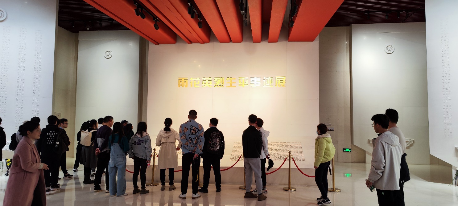 本次活动的最后一个环节是在雨花台烈士纪念馆共同参观雨花英烈生平事迹展。该展览以中国共产党领导新民主主义革命的历史进程为主线,共分为“光荣北伐革命先锋”、“力挽狂澜前仆后继”、“奋起抗战中流砥柱”以及“迎接黎明血沃新天”四个部分。以烈士遗物、照片、史料为主体,辅以场景、视频、多媒体等多种展陈手段,集中展示了179位雨花英烈的生平事迹,生动的诠释了中国共产党人的初心和使命。在纪念馆中的每一步,都见证着一个如火青春的绽放,他们用自己的生命,照亮着中国前行的道路。时至今日,雨花台精神依旧能够给我们带来奋进前行的磅礴力量,我们前来,既是缅怀,亦是借往励今,继承前辈遗志,开创更加光辉灿烂的未来。