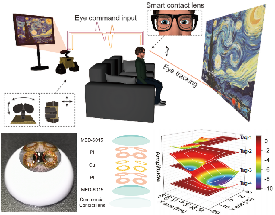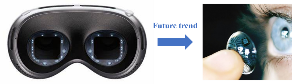 2024年初,Apple公司上市了其首台革命性的空间计算设备Vision Pro。它将数字内容无缝融入真实世界,以最自然、最直观的输入方式——眼睛,为用户带来全新的在混合现实(MR)中的交互体验。这在业界学界中点燃了眼动追踪技术的研发热潮。隐形眼镜作为一种普适的技术,已经在全球范围内被广泛用于视力矫正。隐形眼镜天然与眼睛合为一体,有望实现原位眼动追踪功能,赋能精准实时、轻量无感、自然高效的眼机交互应用,是增强现实智能装备的终极形态。尤其可以闭眼的时候使用。