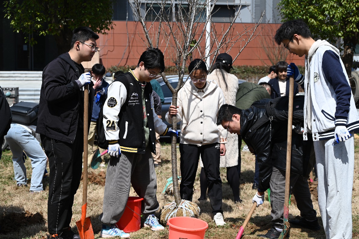 毕铮:“前人栽树,后人乘凉。”植树的意义不在于当下起到立竿见影的效果,而是要考虑其长远的影响。虽然本次植树活动中栽下的晚樱还只有光秃秃的枝干,但总有一天会开出美丽的花朵。这就像同学们如果在学习、科研道路上能够脚踏实地,最终会取得属于自己的成果。