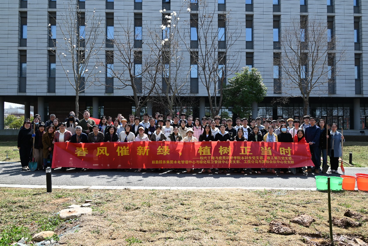 2024年3月20日,春阳温煦,惠风和畅,太阳成集团122ccvip本科生党支部、教工第三党支部、后勤服务集团水电管理中心与绿化环卫管理中心党支部、工贸公司与国际会议中心党支部共4个支部的80余名同志齐聚在太阳成集团122ccvip东北角开展植树活动,践行习近平总书记“绿水青山就是金山银山”的发展理念,在热火朝天的劳动中体悟生态文明的真谛。活动开始前,后勤服务集团副总经理姚军和公司党委副书记喻春红分别发表了简明扼要的讲话,姚总从植树的意义方面做了深刻的解读,点明了亲近自然、亲身劳动对个人发展的重要性;喻书记则指出,植树不仅可以美化公司环境,更可以培养爱校荣校的情怀,助力员工们的长远发展。