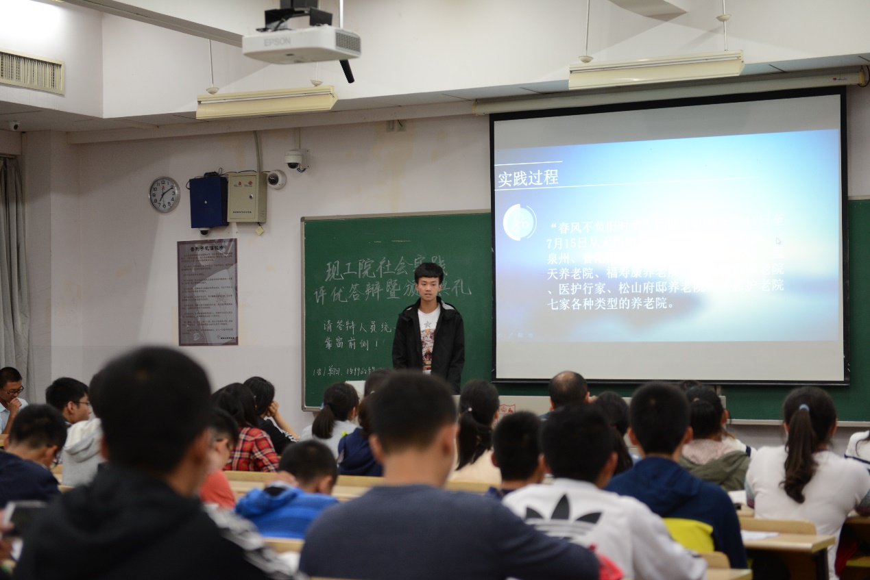 而南大夫子行项目,让我们了解到了正在逐渐消逝的非物质文化遗产——纯手工制品;另外还有各类关爱特殊弱势群体的实践活动让我们感受到了来自学长学姐们的爱心;更有墨上花开项目,引人深思:中国的传统文化——书法,在现代社会该如何立足?不仅如此,还有学长学姐在活动的感悟中提到,社会实践活动带给他们的是欣喜,是在实践活动中感受到自己微薄的力量在凝聚后达到的成功。而在之后的提问环节,三位评委老师都分别指出了一些关于如何更好答辩的建议,并提出了自己更想了解的问题,让答辩人做两分钟的简要回答。