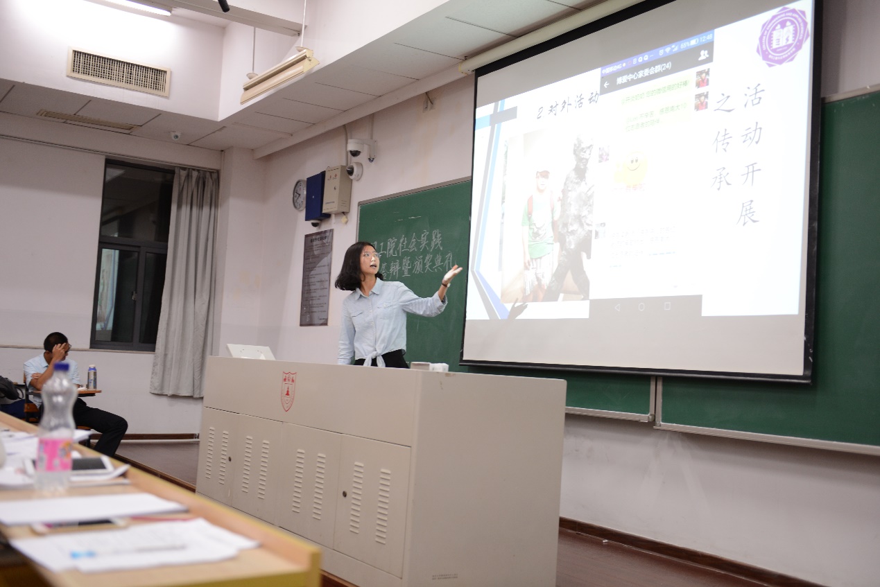 现场,主持人严肃正经又不是活泼的串场,让人不禁捧腹;而15级学长学姐精心准备的答辩,又让同学们受益匪浅。比如校级优秀团队——远望公益,学长学姐们在大凉山做支教,重点关注于那儿员工的心理与生理方面的问题,角度新颖,得到了一致好评