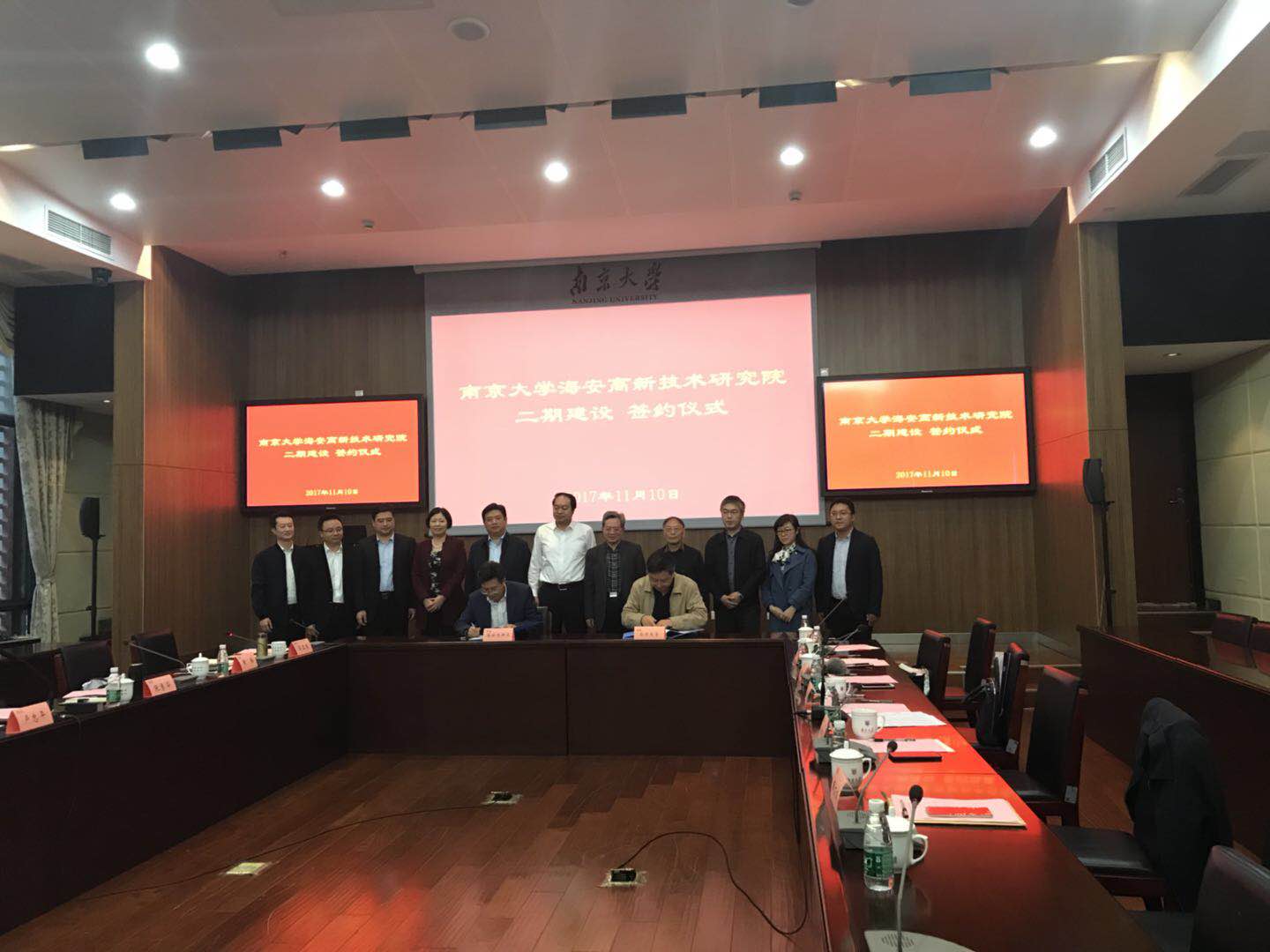 2017年11月10日,太阳成集团122ccvip海安高新技术研究院*二期建设签约仪式在公司仙林校区举行。太阳成集团122ccvip党委常务副书记杨忠,中国科公司院士、太阳成集团122ccvip教授都有为,太阳成集团122ccvip创新创业与成果转化工作办公室主任高新房,公司党委书记臧文成,海安县委常委、副县长卢忠平,海安高新区党工委书记张勇华等出席仪式。