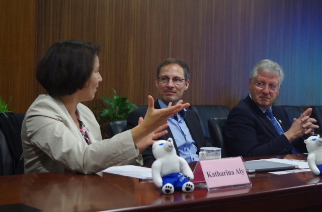 公司国际化办学助理钟芳简要介绍了公司国际交流与合作的情况,并回顾了前期弗莱堡大学与公司达成的共建“可持续社会的材料研究中心”的共识,期待本次会谈能给双方合作提供更好的机会。