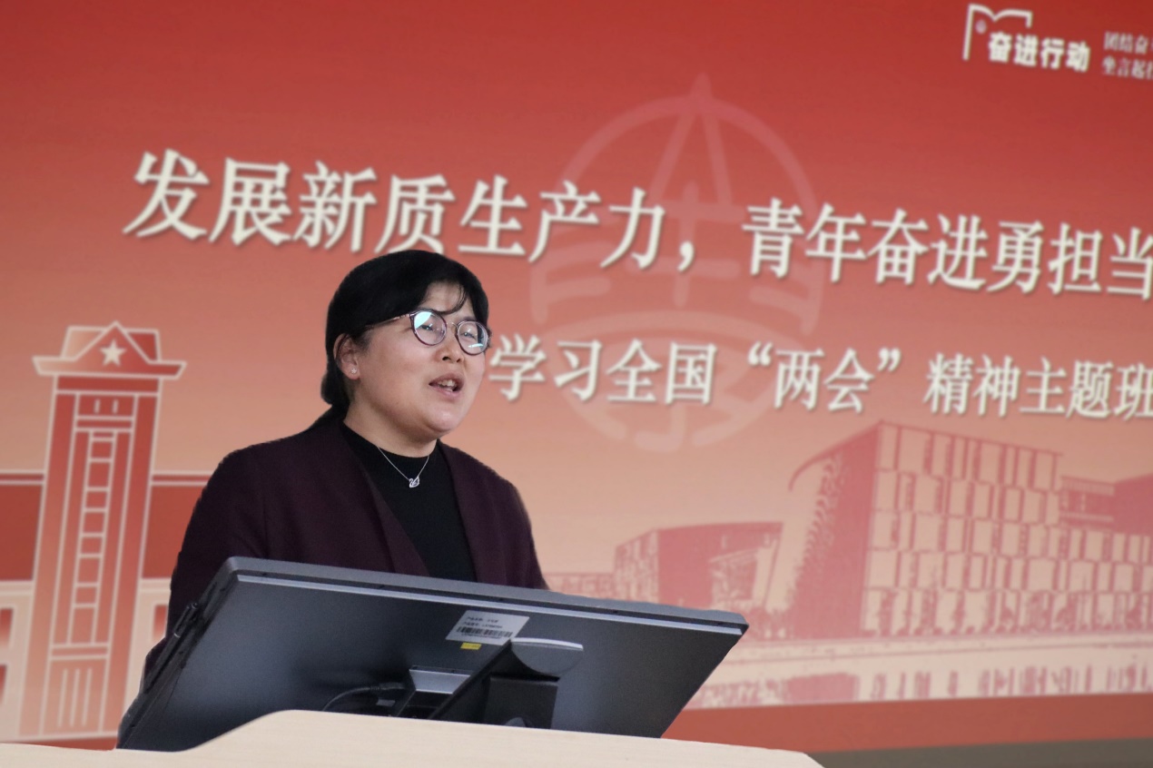 辅导员陈晓聚焦全国“两会”,鼓励同学们响应时代号召、扎实专业基础、培养创新意识,主动担当、积极作为,努力成为“新质生产力”需要的时代新人,为创新服务美丽中国建设贡献青春动能。