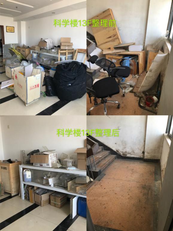 上午9点左右,各课题组同学们带着准备好的工具集合完毕,首先从科学楼13楼开始打扫,活动中每位同学们都积极参与,相互配合,清扫了大量的垃圾,清拖并整理楼道中长期占道堆积的一些非固定资产用品,尤其对于一些平常容易忽略的卫生死角进行了彻底的大清扫,确保了楼层的卫生整洁,清洁完毕后整体环境焕然一新。