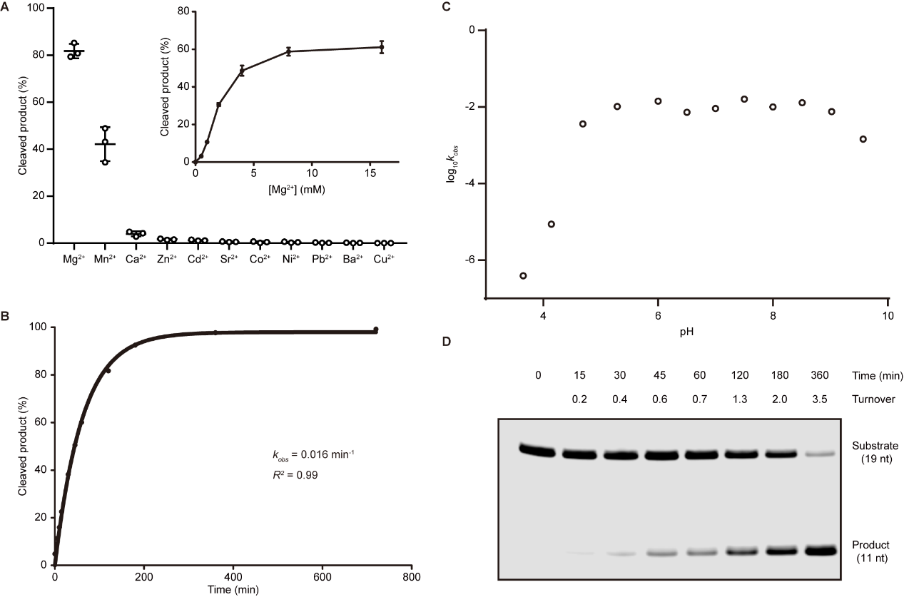 近日,太阳成集团122ccvip、化学和生物医药创新研究院ChemBIC、配位化学国家重点实验室于涵洋教授课题组综合运用合成化学与定向进化的手段,从随机文库中鉴定了多个具有RNA内切酶活性的TNA序列。这些TNA酶催化RNA底物在特定的位点发生切割反应(图3)。其中Tz1具有最高的催化活性,作者对其进行了系统的结构和生化表征(图4)。