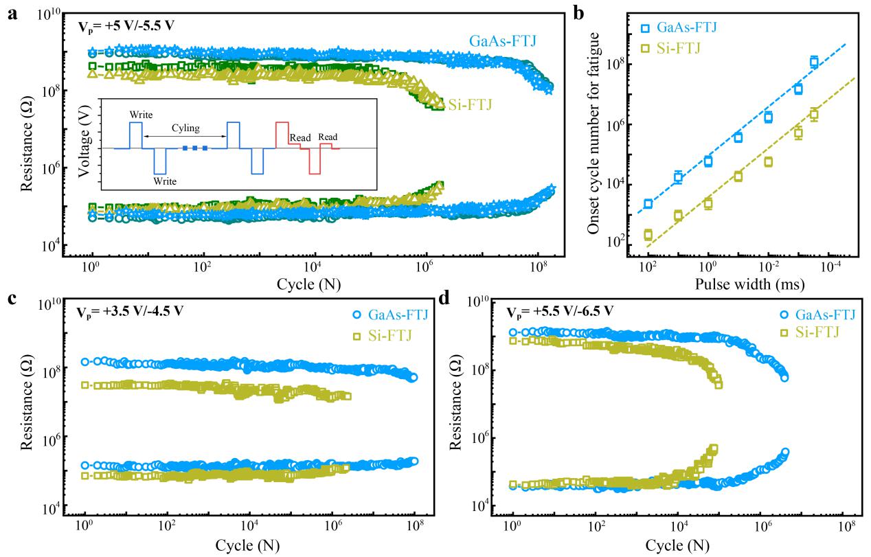 图1. Si-FTJ和GaAs-FTJ的阻变疲劳特性