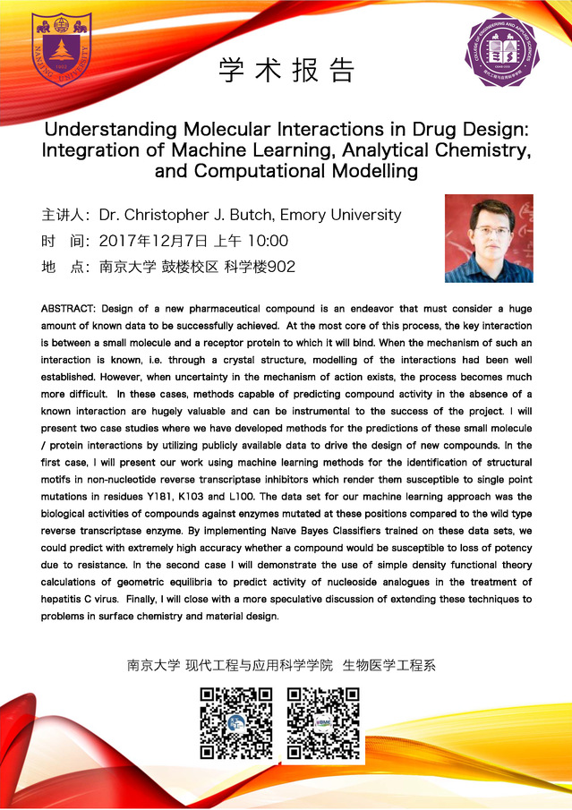 报告题目:Understanding Molecular Interactions in Drug Design: Integration of Machine Learning, Analytical Chemistry, and Computational Modelling