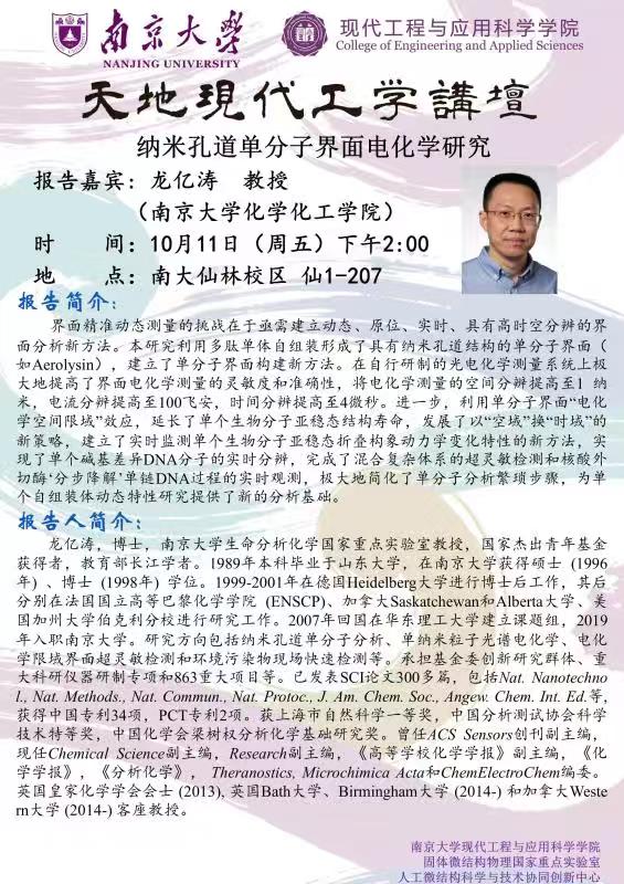 报告题目:纳米孔道单分子界面电化学研究