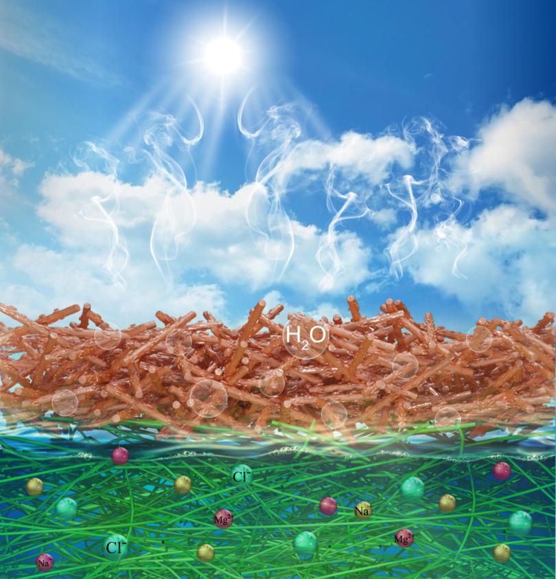 太阳能海水淡化具有低成本、环境友好等优势,是一种清洁、便携的水处理技术,近年来兴起的界面光热转换技术进一步推动了太阳能海水淡化的发展。随着微纳结构调控对光-蒸汽转换效率的有效提高,如何解决海水淡化过程中吸收体本身的结盐问题及其海水淡化性能的稳定性问题成为学界、业界共同关注的焦点之一。