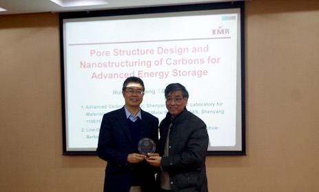 报告开始,成会明院士对金属所的科研条件、技术水平、团队力量作了简单介绍,着重介绍了金属所依托中国科技大学成立的中国科技大学材料科学与工程公司。接着,成院士主要介绍了该课题组在炭材料应用于超级电容器方面的工作。炭材料的长径比对储能性质影响很大,一般来说,较小的长径比能有效提高材料储能能力。课题组设计了特殊的材料结构,大大降低炭材料长径比,降至活性炭长径比的约百分之一。该设计获得国内外同行的高度评价。此外,成院士还提出通过调控电位的方法来获得更高的能量密度,从而提高材料的储能能力。随后,成会明院士介绍了碳纳米结构(碳纳米管、石墨烯)在储能方面的应用:一是作为电解液添加剂提高电池各方面性能;二是人们利用其限域效应,在科学研究领域发挥作用。最后,成院士特别提到发展“智能”、“轻、薄、柔”的未来储能器件,期待新型电池在未来便携性、柔性电子设备中的应用。