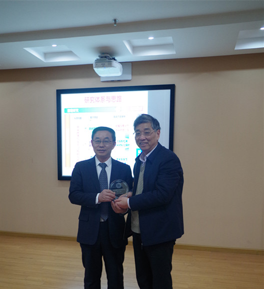 图:祝世宁院士出席讲坛并代表讲坛组委会向赵宇亮院士赠送纪念品。