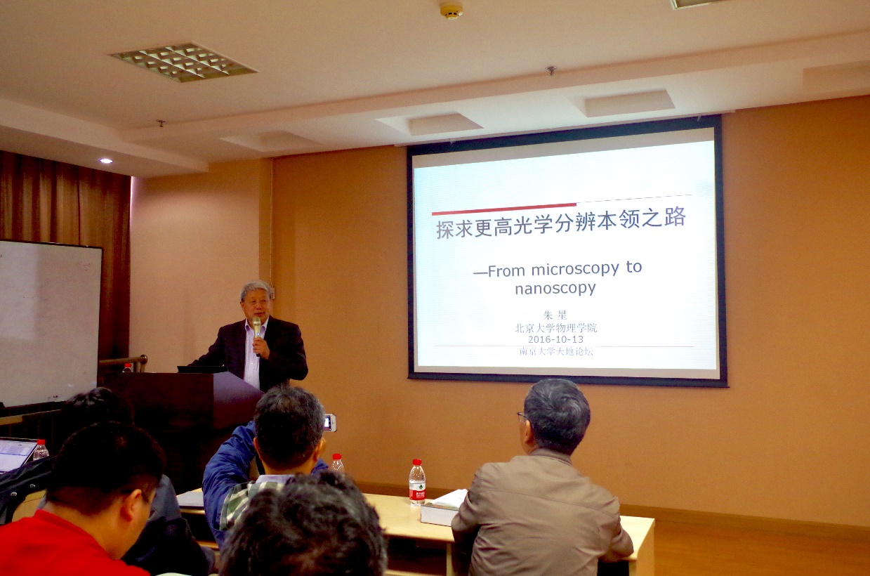 2016年10月13日,“天地现代工学讲坛”第六期第三讲在唐仲英楼B501报告厅如期开讲。北京大学物理公司朱星教授担任此次讲座的主讲嘉宾,讲座的主题为“探求更高光学分辨本领之路—From microscopy to nanoscopy”。本次讲坛由张伟华教授主持,讲坛组委会主席祝世宁院士、执行经理陆延青教授等出席讲坛,祝世宁院士代表讲坛组委会向朱星教授赠送了讲坛纪念品。