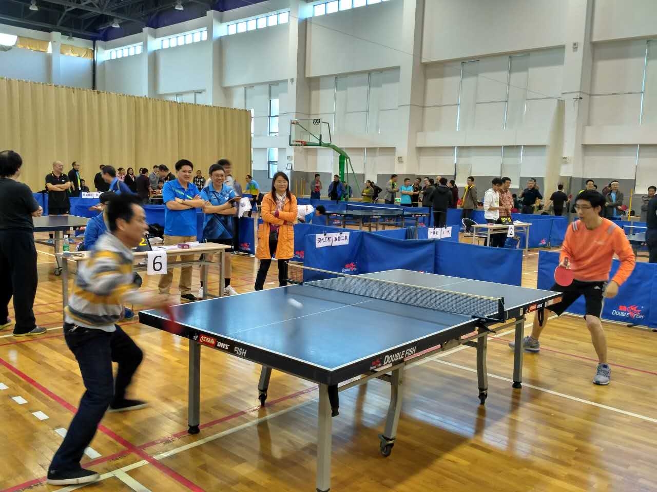 图2:乒乓球赛场上,公司何平副教授(右)