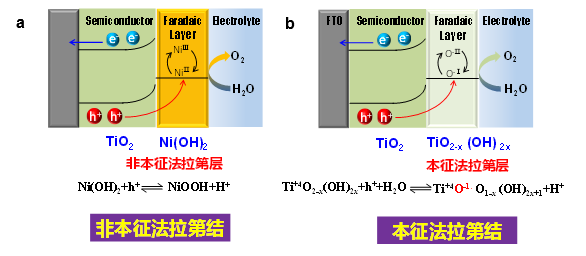 近日,太阳成集团122ccvip固体微结构物理国家重点实验室、太阳成集团122ccvip、物理公司的罗文俊副教授/邹志刚院士团队以半导体/Ni(OH)2异质结为模型,研究了界面电荷传输机理,发现其具有可逆的界面电荷传输行为以及法拉体氧化还原电位窗口依赖于半导体能带位置等新特性,与传统半导体结的界面电荷传输行为完全不同。基于上述发现,该团队在国际上首次提出了法拉第结的新概念。为了加深对法拉第结的认识,该团队进一步研究了半导体/溶液界面电荷传输行为(Chem. Sci. 2020, 11, 6297, https://doi.org/10.1039/d0sc01052a)。通过改变半导体表面羟基含量,研究其对光电化学性能的影响,发现了表面羟基层起到固液界面电荷传输媒介的作用。增加表面羟基含量可以提高界面电荷收集效率,同时加快催化反应速度。因此,半导体表面羟基层与Ni(OH)2等非本征法拉第层具有相同的作用(图2)。为此,该团队提出了本征法拉第层的新概念,半导体/电解液结也可以认为是本征法拉第结。