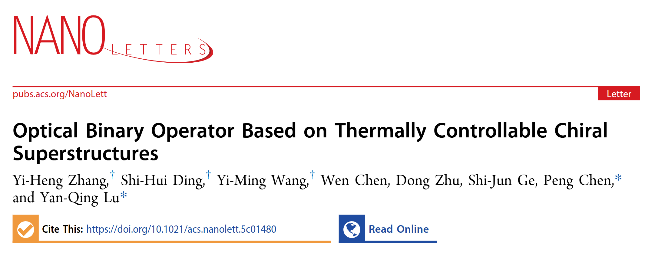 相关成果以“Optical Binary Operator Based on Thermally Controllable Chiral Superstructures”为题,于2025年5月5日在线发表于Nano Letters(DOI:10.1021/acs.nanolett.5c01480)。