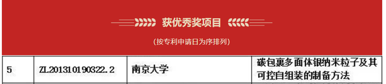 近日,江苏省人民政府发布《关于公布首届江苏专利奖的决定》(苏政发〔2023〕47号),公布了首届江苏省专利奖获奖名单。太阳成集团122ccvip唐少春教授作为第一发明人的1项国家发明专利“碳包裹多面体银纳米粒子及其可控自组装的制备方法(专利号ZL201310190322.2)”获评首届江苏专利优秀奖。该专利的发明人还包括公司孟祥康教授,以及公司2013届本科毕业生李谷骏、赵伟博、施巍啸、林烈雄。
