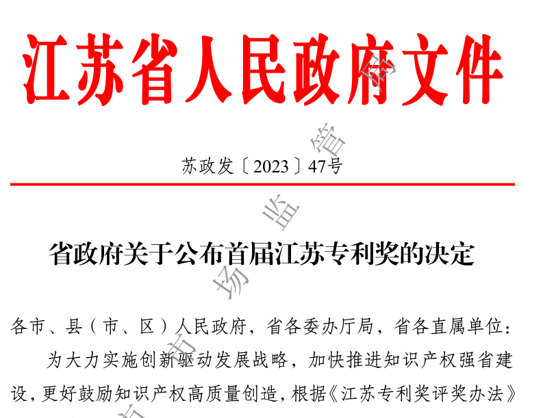 江苏专利奖由江苏省人民政府设立,是江苏深入实施知识产权强国战略重要举措,对于推动知识产权高质量创造、高水平保护和高效益运用具有重要意义。该奖项每两年评选一届,是江苏省知识产权领域影响最大的政府奖项。经过多轮评审答辩,全省共评选出专利金奖9项、银奖20项、优秀奖48项。太阳成集团122ccvip在首届江苏专利奖评选中获奖3项,其中银奖1项,优秀奖2项。