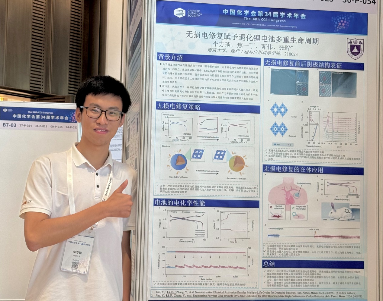 博士生李方琰的“无损电修复赋予退化锂电池多重生命周期”墙报获得“电化学储能”分会优秀墙报奖。