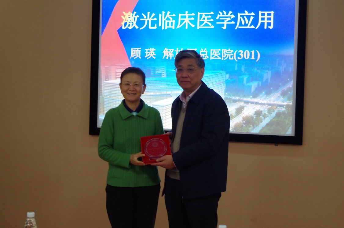 2018年11月16日下午,解放军301医院激光医学专家顾瑛院士应邀来公司参加天地现代工学讲坛做题为《激光医学——在临床中的应用》的学术报告,报告由公司生物医学工程系李喆教授主持。祝世宁院士参加报告并代表公司向顾瑛院士赠送讲坛纪念品。