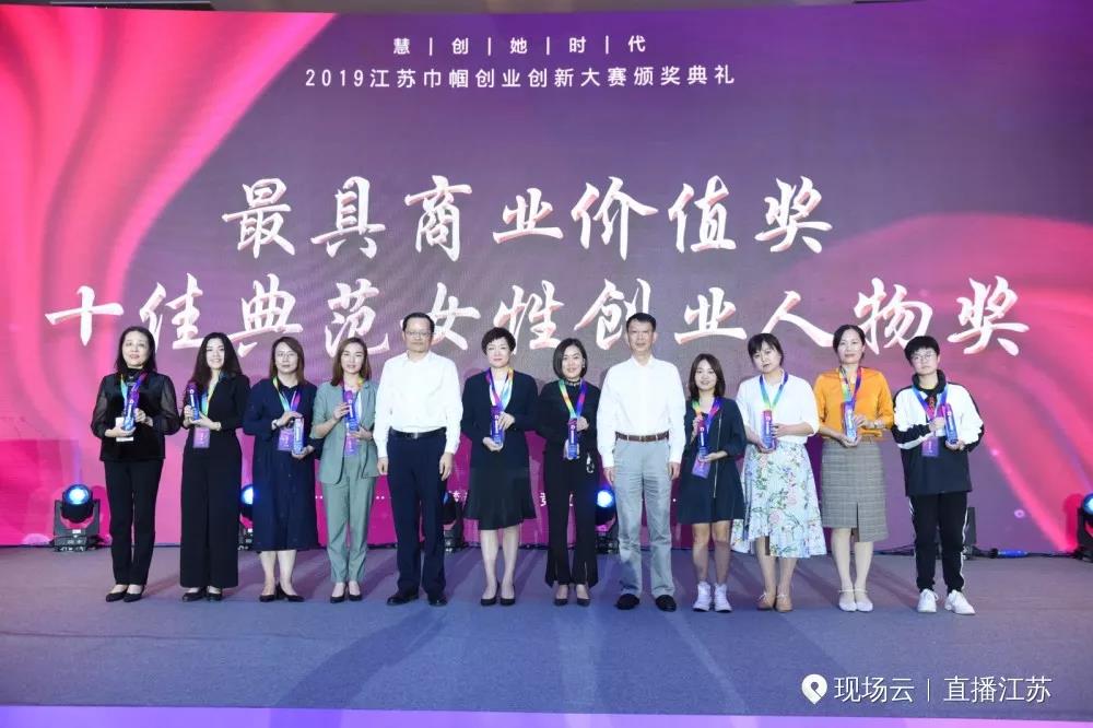 2019年9月29日,由江苏省妇联联合省人才办、省科技厅、省教育厅、省工信厅、省人社厅、省农业农村厅等单位主办的以服务女性创业者为主的专业赛事“慧创她时代”2019江苏巾帼创业创新大赛决赛暨颁奖典礼在南京金陵江滨酒店举行。 江苏省副省长、省巾帼建功活动领导小组组长马秋林出席并讲话,江苏省妇联党组书记、主席张彤主持颁奖仪式。江苏省委组织部副部长洪浩,省委教育工委副书记苏春海,省科技厅副厅长夏冰,省工业和信息化厅副厅长李强,省人力资源和社会保障厅副厅长张宏伟,省农业农村厅副厅长蔡恒等领导和嘉宾出席。