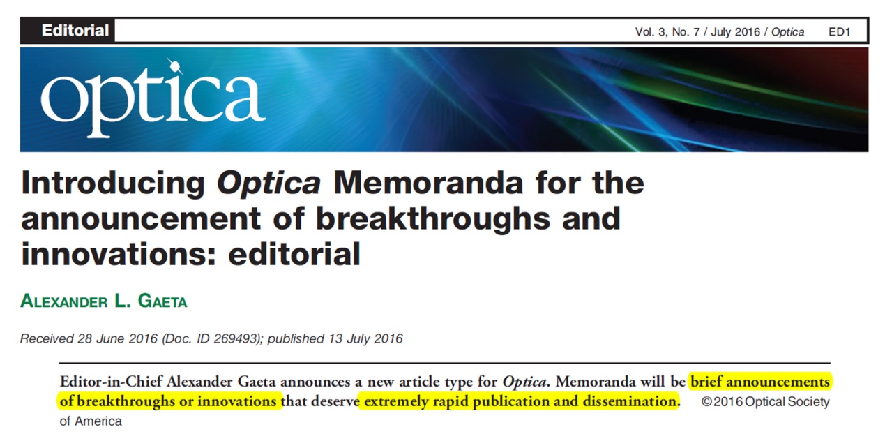 图三、Optica Memorandum栏目的定位与要求。